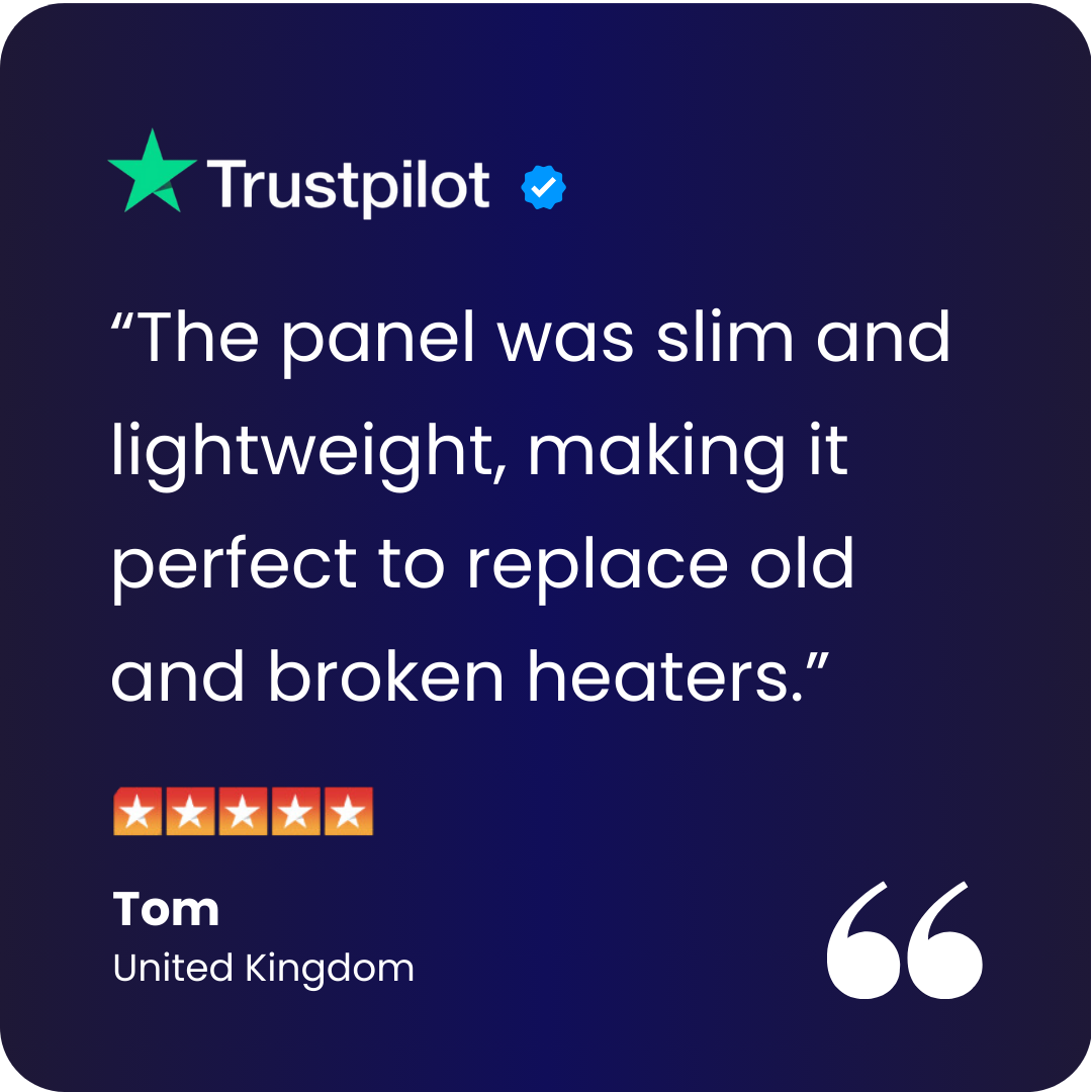 Upgrade to a smarter, energy-efficient way to heat your home with the 450W Classic Infrared Heating Panel. Manufactured in Europe using premium components, this panel delivers fast, comfortable radiant warmth while using less energy than traditional heating — built to perform reliably for 40+ years.