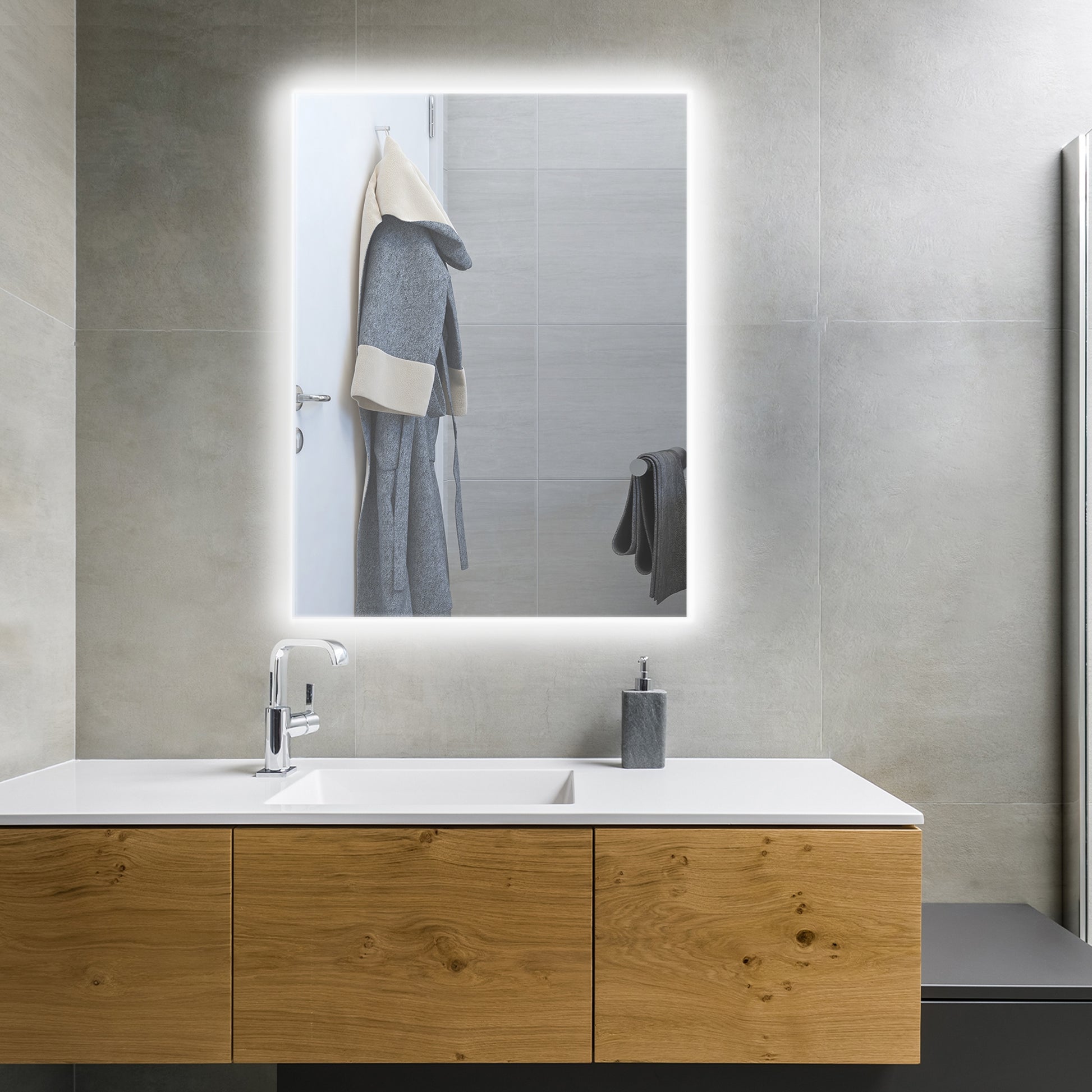 Protected with a IP65 rating, it will not be damaged by splashes of water from any direction and is a plug-and-play unit for your convenience. It measures just 600mm x 800mm x 11mm and is beautifully disguised as a mirror, whilst still providing heat.