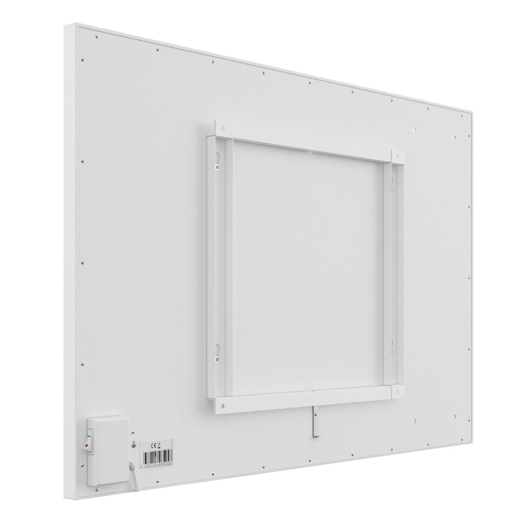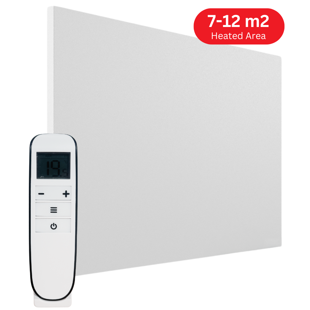 Measuring 900mm x 600mm x 25mm and weighing 9.73kg, the panel sits flush when wall or ceiling mounted, keeping floors and walls clear while blending seamlessly into your space. With a 700W output, it is designed to heat a moderately insulated area of approximately 7–12m², making it ideal for living rooms, bedrooms, offices, and larger heating zones.